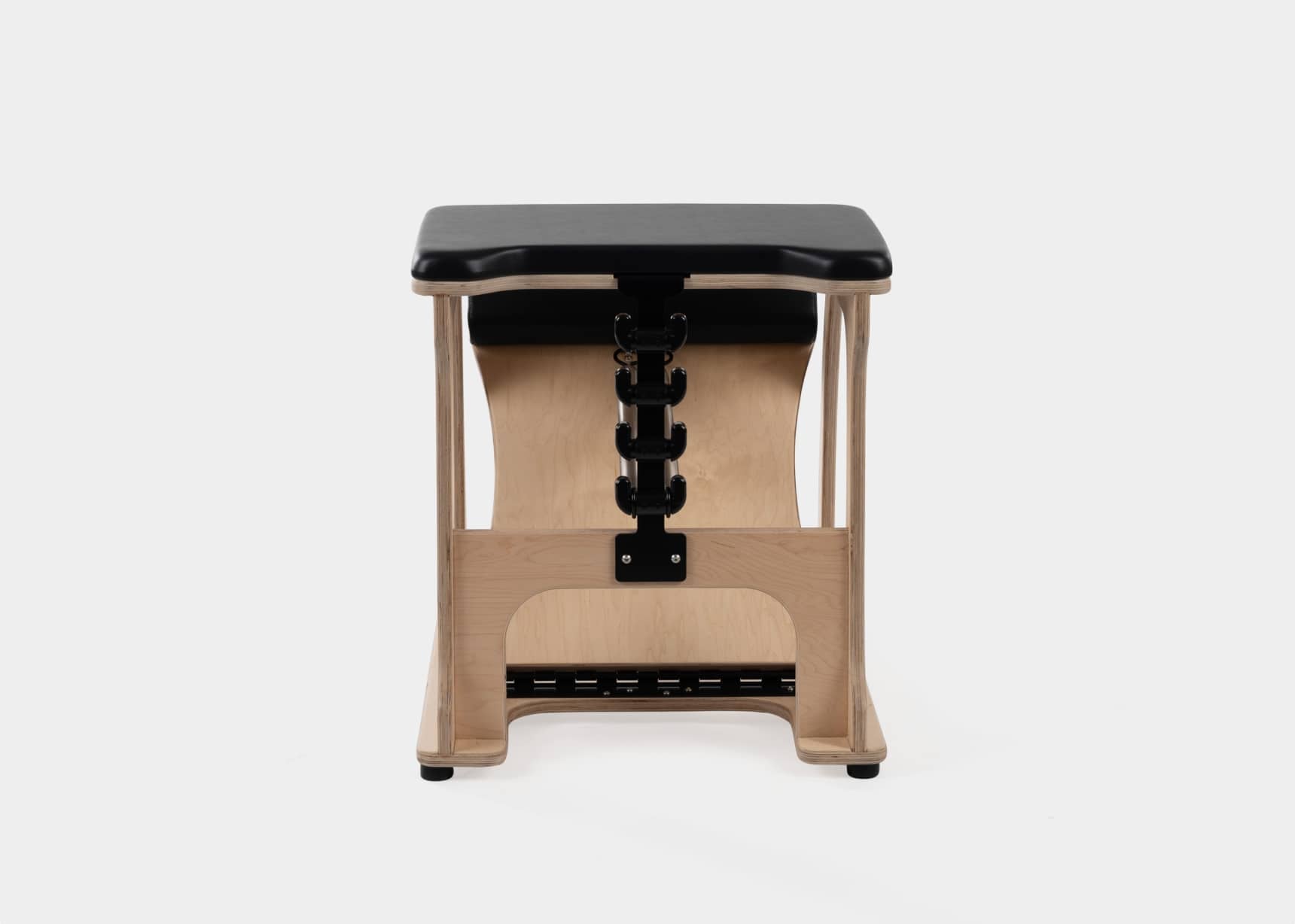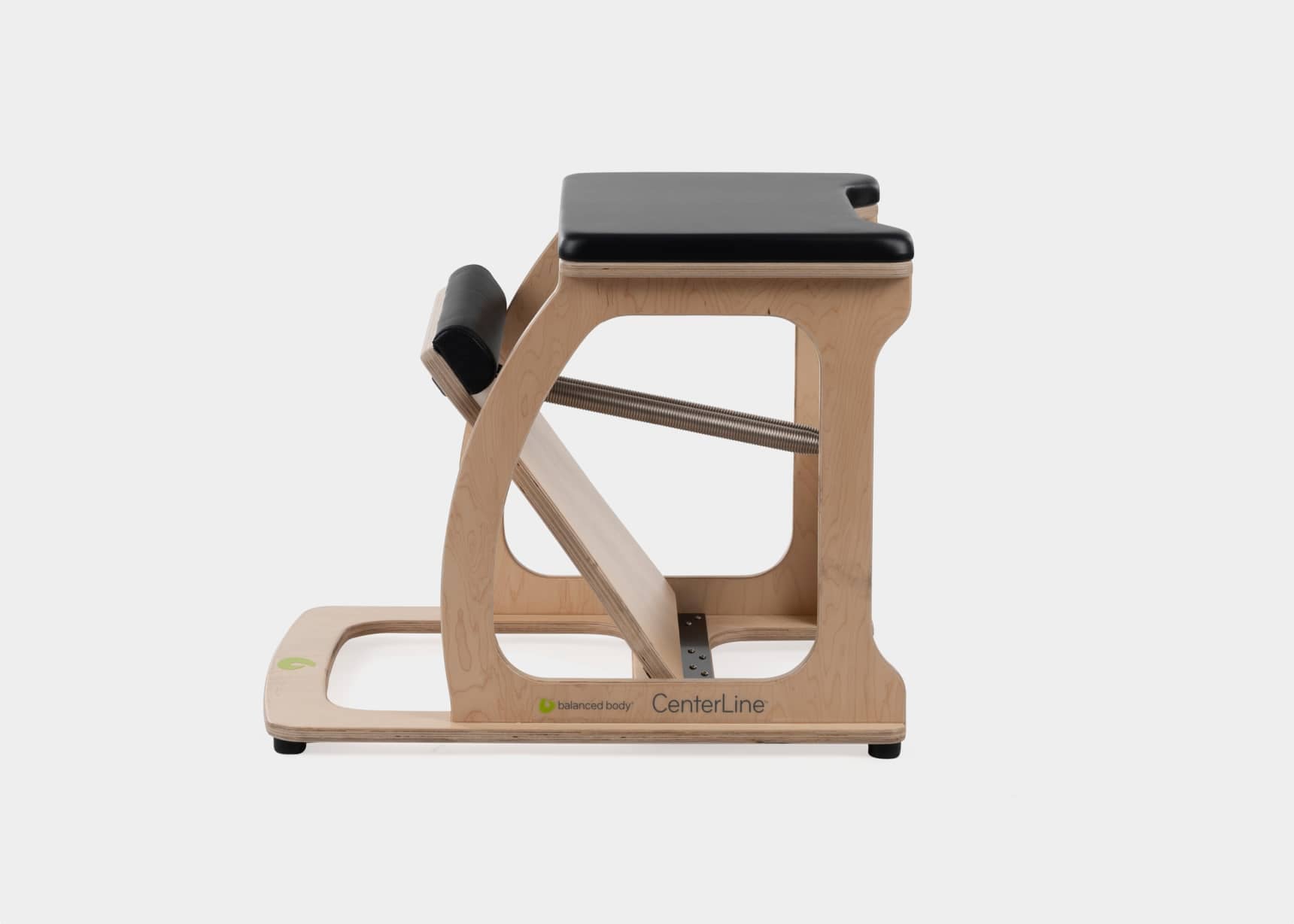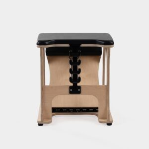 Meticulously developed and tested over two years, the CenterLine® Chair is based on the geometry of the original Pilates chair. It is intentionally narrow (at 21.5″ (55cm) wide) to facilitate exercises like Horseback and Spine Stretch. Our modern materials and uncluttered frame design keeps the CenterLine Chair lightweight for easy portability while still stable and secure for Chair exercise. 2 heavy black springs attach in combinations of up to 20 resistance positions on our innovative, safe and secure ”cactus” spring attachment system.
