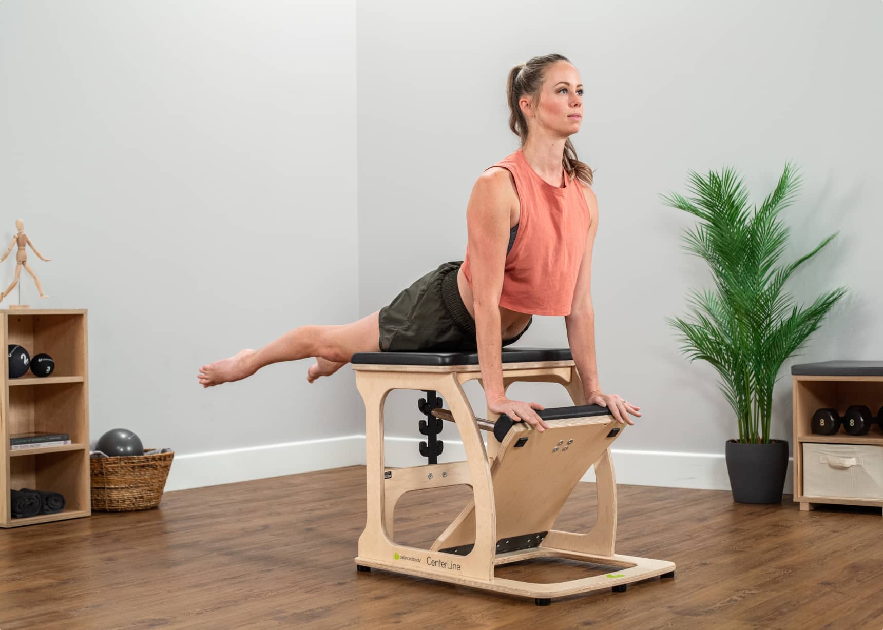 Comfortable, durable, and easy to use, the CenterLine Chair offers practitioners a traditional chair experience with a small, single-pedal footprint. Created in collaboration with Amy Taylor Alpers and Rachel Taylor Segel of The Pilates Center in Boulder, CO.