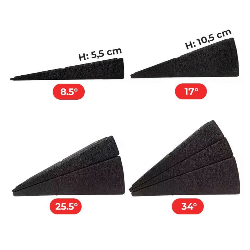 Kilsetet kan anpassas efter dina behov. De är ergonomiskt utformade och den triangulära strukturen förhindrar glidning samt ger säkerhet och stabilitet. Den minsta delen är 5,5 cm hög och den största delen är 10,5 cm hög.