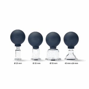 Dessa högkvalitativa massagekoppar i glas är idealiska för koppning utan värme. Den klockformade massagekoppen har en klämbar sugboll i plast för att bland annat underlätta självapplicering. Dessa traditionella tekniker kan hjälpa till att lindra spänningar och stimulera blod- och lymfflödet. Kopparna är gjorda av riktigt glas och är lätta att rengöra och desinficera. Setet består av fyra olika storlekar med varierande sugkraft. De större kopparna är lämpliga för större områden som rygg eller ben, medan de mindre är idealiska för ansikte, händer, fötter eller leder. De är lämpliga för professionell terapeutisk användning inom fysioterapi, wellness och andra medicinska anläggningar.