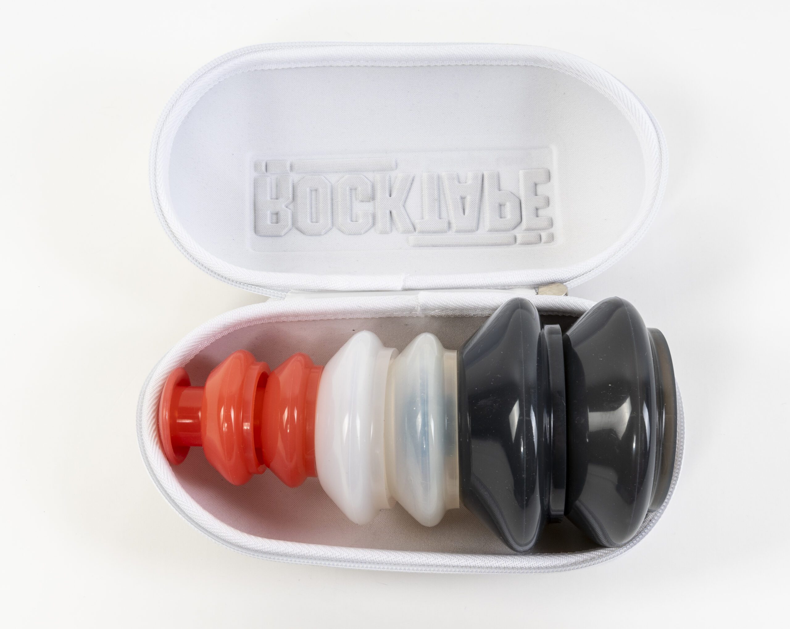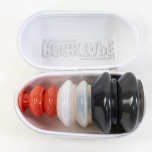 RockPods Glide kommer i ett case tillsammans med en burk RockRub och en snabbstartsguide.