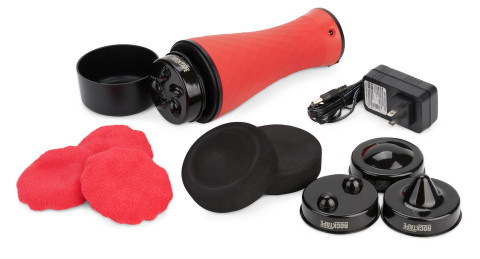 RockWave Pro en trådlös vibrerande och roterande massageapparat som kommer med två mjuka och fyra hårda behandlingshuvuden.