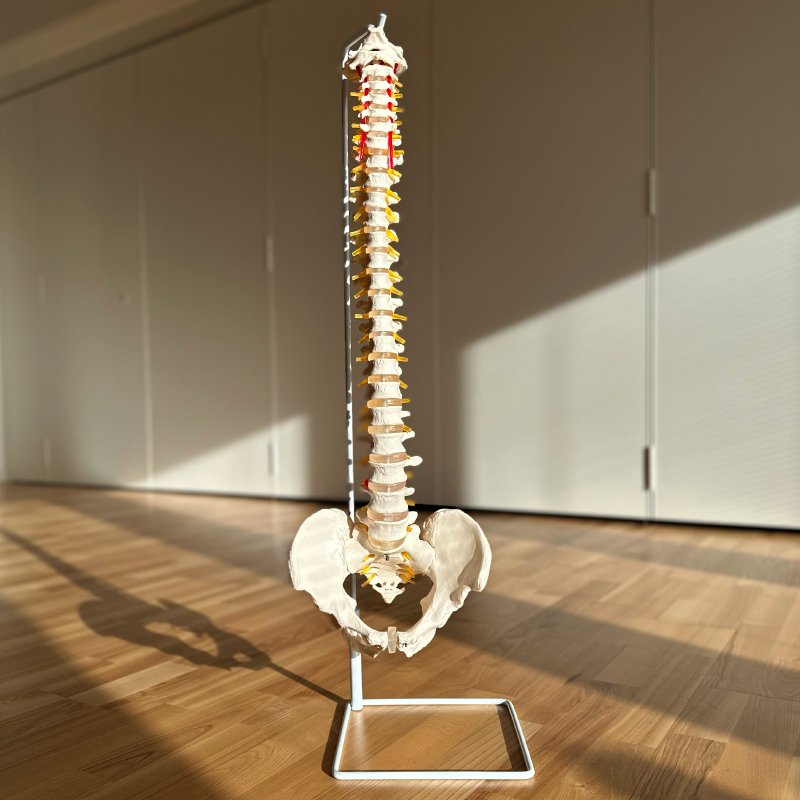 Ryggmodellen är gjuten i tvättbar PVC-plast och levereras på ett järnstativ med fot.