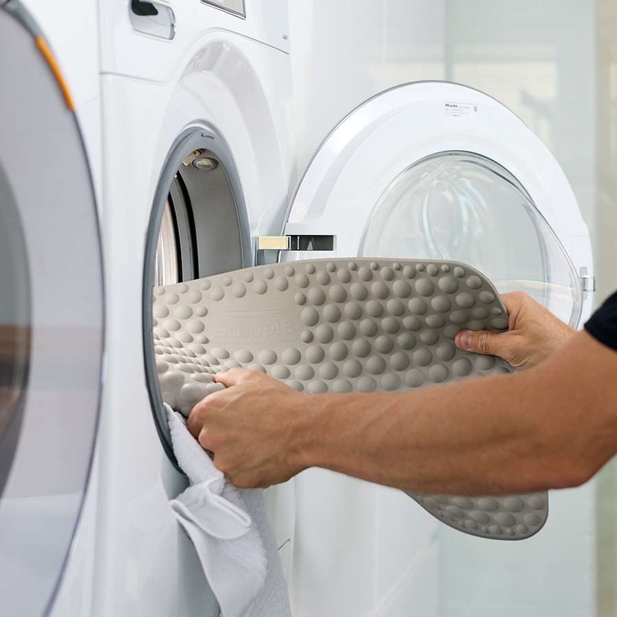 En vanlig balansbräda på en boll är dock en för stor utmaning för de flesta – åtminstone till en början. Här är en Steppie helt annorlunda och ”mild” i sin utmaning och allt eftersom du blir bättre kan du öka träningen genom att till exempel stå på ett ben i taget eller vrida på brädan och luta åt motsatt håll.
