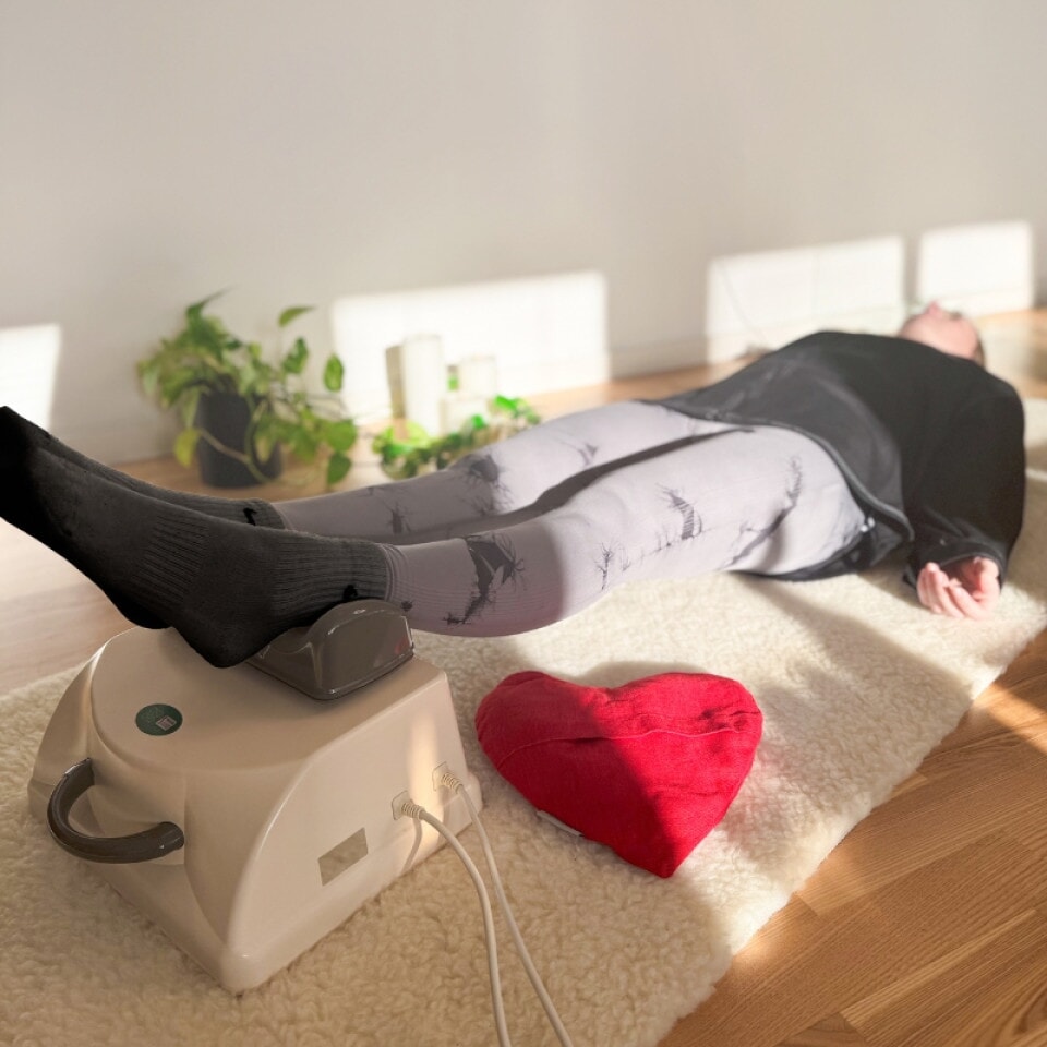 När Chi-maskinen stannar kommer du att uppleva ett darrande tillstånd i kroppen. Ligg ner och njut av det i några minuter innan du fortsätter med din dag. För att få full effekt är det viktigt att ligga ner i 2-3 minuter, helst med böjda knän och fötterna placerade på golvet.