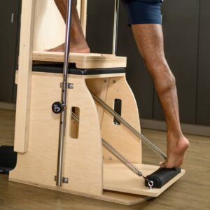 Based on Joseph Pilates’ original design and dimensions, the classically designed Wunda Chair is known for its ability to grow with the progress of a student’s program. Featuring the widest range of resistance for any single–pedal chair, up to 83 lbs., its two springs are adjustable to 8 resistances and provide 28% more usable resistance than other chairs. BONUS: Just like Joe’s original, our Wunda Chair also converts into small sitting chair with optional cushions.