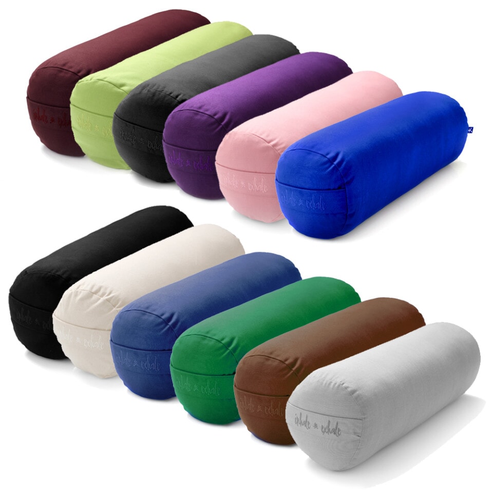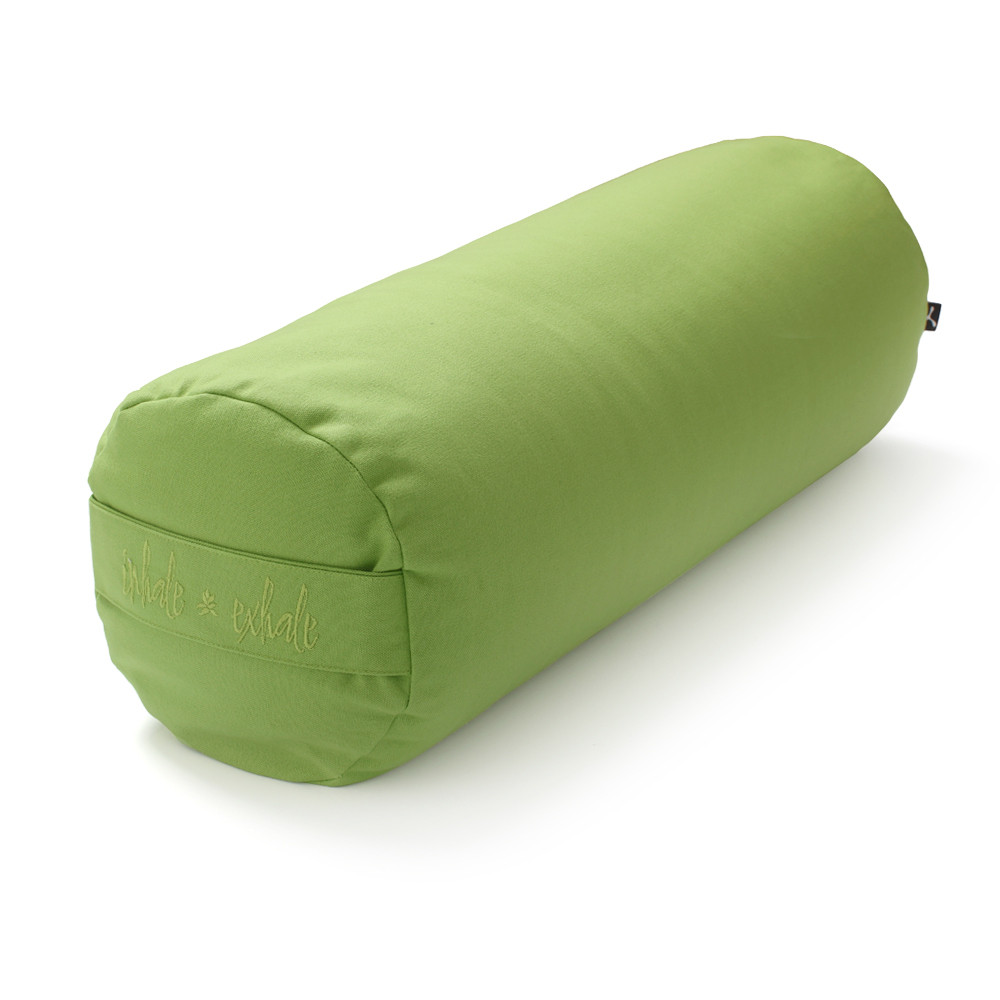 Yogabolstern passar som extra stöd i både sittande och liggande position. Den har en praktisk bärrem/handtag i ena änden, samt en dragkedja så att överdraget kan tas av och tvättas i 40°. Yogakudden har ett inneröverdrag så att innehållet, boveteskalen, är på plats när överdraget behöver tvättas. Bärhandtaget är dekorerat med en vacker Inhale Exhale-brodyr.